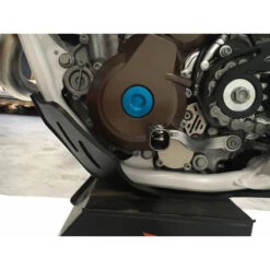 - The AXP Racing skid plate protects the frame, the cases and the water pump.