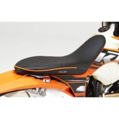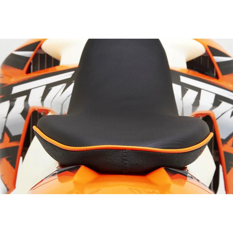 - Genuine leather seating in choice of colors and styles. Shown with Carbon-Fiber seating, Asphalt sides and KTM Orange welt.