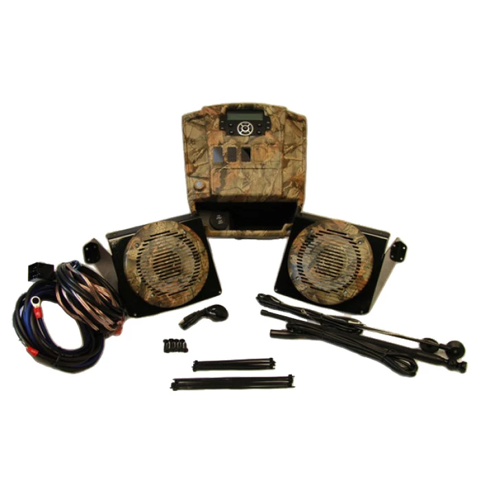 Our stereo system includes 4x 50w Bluetooth tuner, USB/AUX inputs, radio bezel, 2 – 6.5″ 80w speakers with mounting plates, complete wiring kit (including 6 gauge power wires), and a 12v antenna